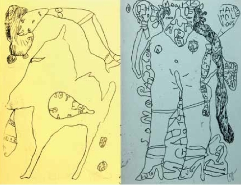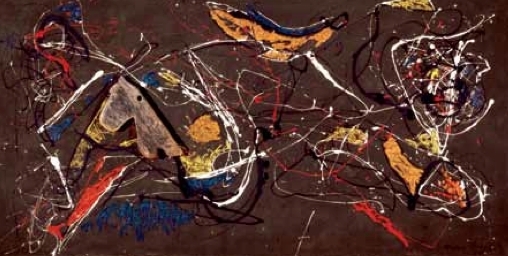同样,弗雷德的波洛克论里最关键的部分也不是波洛克如何改变了线条的用法(弗雷德认为波洛克的先锋主要体现在这一形式特点上),而是这种对线条功能的改造或模糊(该蜕变完成于波洛克创作生涯中最富挑战性、最重要的三年:1947-1950)来自一种否定的辩证法,用弗雷德的话说“这一时期波洛克在形式上的野心表现出了一种近乎自相矛盾的特点。”弗雷德在展开他有关波洛克作品视觉性(opticality)的著名论述时指出,在波洛克作品里,视觉场域内的多样性与其同质性、色彩的物质性与其纯粹的视觉性、视觉空间与触觉空间之间都形成对立,更重要的是,线条的用法与其界定形象的传统功能也完全相反。弗雷德的此番分析并不仅仅只是针对波洛克1947-50年的抽象画,还进一步延伸到艺术家另一些试图重新调动形象的不无问题的尝试上,尤其是《切割》(Cut-out,1948-50)和《网之外》(Out of the Web,1949)这两件作品。对我们现在的讨论而言,弗雷德文章里最有意思的部分正是他对上述两件作品所做的区分。