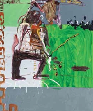 不幸的是,这些宝贵之处都不能掩盖一个事实:此次展览漏掉了《弗兰茨•卡夫卡的“阿美利加”欢乐大结局》(The Happy End of Franz Kafka’s “Amerika”,1994);《现在我要钻进我的大桦树林,我的药丸会让我好起来》(Jetzt geh ich in den Birkenwald, denn meine Pillen wirken bald,1990-91);《重家伙》(Heavy Burschi,1989/90);《邪恶的战争》系列(Krieg Böse, 1983)以及《奖品/价格图画》(Preis-Bilder,1987/94)等基彭伯格重要的代表作。仿佛是为了弥补这一缺憾,策展人将艺术家的海报推到显著位置,几乎占据了所有展厅,而且跟绘画平起平坐——这样处理理所应当,因为艺术家本人也非常重视海报这种宣传形式。