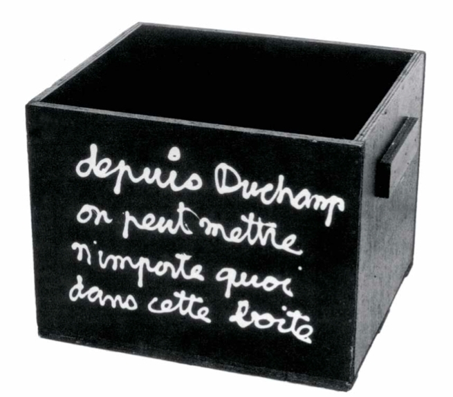 “随便啥都行”似乎是一个相对近期的现象。无论是明朝的宫廷画师,还是为教堂工作的巴洛克雕塑家,都不能享受这样不带任何限制的自由。因此,此处重要的问题是:这种状况自何时伊始?从何时起一切都可以成为艺术?让我们到法国艺术家本·沃提尔(Ben Vautier,通常在作品上签名为“本”)1962年的作品《黑盒子》(Boîtes noires)中来寻找答案。