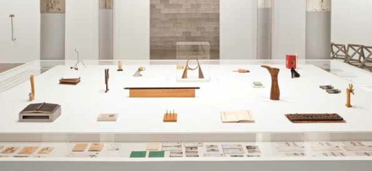 沃吉和联合策展人亚斯米尔·雷蒙德(Yasmil Raymond)为自己树立了一项艰巨的任务。他们不仅要诠释艺术家长达五十年的创作生涯(到目前为止还没有任何美国美术馆尝试过如此大跨度的回顾展),还必须考虑如何呈现安德烈同样多产的诗歌作品。其他策展人通常都会在两种媒介之间选一个做重点,但雷蒙德和沃吉决定以同等力度呈现艺术家的诗歌和雕塑创作。安德烈用打字机打出来的大量诗稿被放在由他本人设计的长展柜里展示,而同时发行的画册里也收录了多篇有关该主题的文章。(Vincent Katz,Marjorie Perloff和Alistair Rider出色的论文将安德烈的实践跟十四行诗、形体诗、现代主义、具体主义以及战后Oulipo小组联系到一起讨论,在很多地方将他的创作跟这些先例做了区分。)更令人称赞的是,雷蒙德和沃吉还考察了对艺术家感知力更神秘的一些表达方式,比如他有点护身符意味的剪贴簿《护照》(Passport,1960/1970,以彩色影印版展示);他早期邮件艺术的拼贴和文章;他的前画廊老板弗吉尼亚·杜文拍摄的记录安德烈和他朋友们生活的录像;以及他从1950年代末开始制作的一系列名为“达达赝品”的现成品雕塑。我们可以说,这是对安德烈多产多样的艺术实践进行全面回顾的第一场展览。