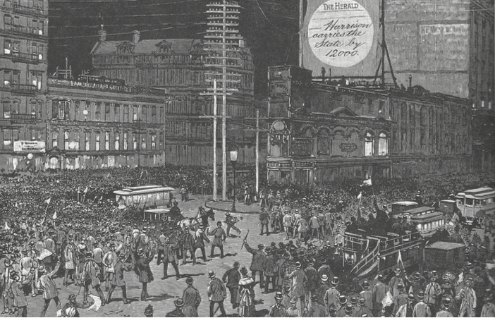 然而,这两个活动的相似之处中最令人着迷的,莫过于各自的传媒史了。两种奇观都经历了技术变革的几个关键时期,这也对它们几十年来的形象造成了决定性影响。无论你在观看2008年北京奥运、2016年里约奥运,还是2020年东京奥运,你看到的和将会看到的,无外乎是1936年柏林奥运。这些奥运会的视觉以及庆典原型最先由希特勒、戈培尔、莱尼·里芬斯塔尔建立,经由艾弗里·布伦戴奇和其他国际奥组委地方官员的改进,获得了较为顺畅的传承。查尔斯·慕瑟这本令人印象深刻的《政治活动和新兴媒体》向我们展示了:1888年至1900年之间的那四次总统选举之于今天的大选,正如1936年柏林奥运之于今天的奥运会。尽管这四次发生在本杰明·哈里森、格罗弗·克利夫兰、威廉·麦金莱、威廉·詹宁斯·布赖恩之间的对决距今已有一百多年,但是这些选举相对于林肯对道格拉斯那场笨拙的内战前决斗来说,要更加接近于我们今天的竞争形式。在19世纪90年代,政治已经不可逆转地沦为了今天我们时时咒骂的东西:一种熟练掌握图像传播技巧的,以及对“金句”进行控制管理的艺术。