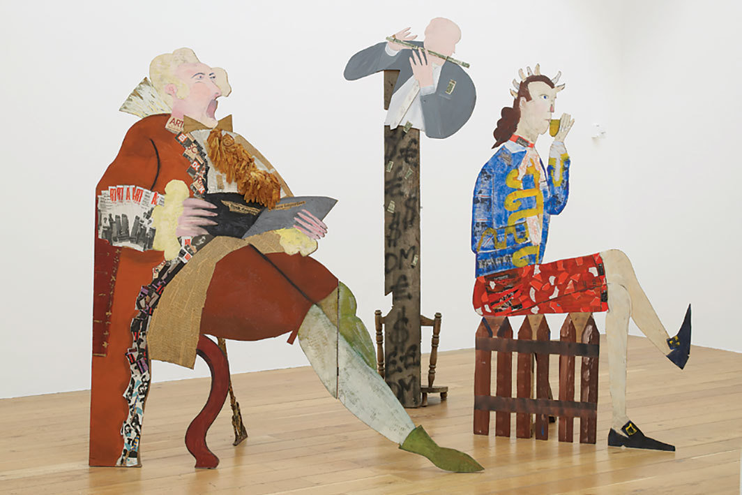艺术家、策展人以及教育者卢比纳·希米德(Lubaina Himid)与英国黑人艺术运动有着长期的联系,并曾在1985年那突破性展览“细细的黑线”中展出。她创作具引人入胜的剧场布景式装置,其中开辟了黑人历史的空间。《时髦的婚礼》(1986)将画家威廉·霍加斯(William Hogarth)作于1743-45年的同名系列画作“升级”为20世纪80年代的政治局势,只见一排独立支撑的彩色夹板波普人物形象,如撒切尔、里根,其中还有一位穿着华服的黑人女艺术家。希米德从未获得她应有的关注,所以看到她拿到2017年透纳奖是让人极其欣慰的,这证明了她那政治的、具有表演性的绘画创作方式有着长久的新鲜度。
