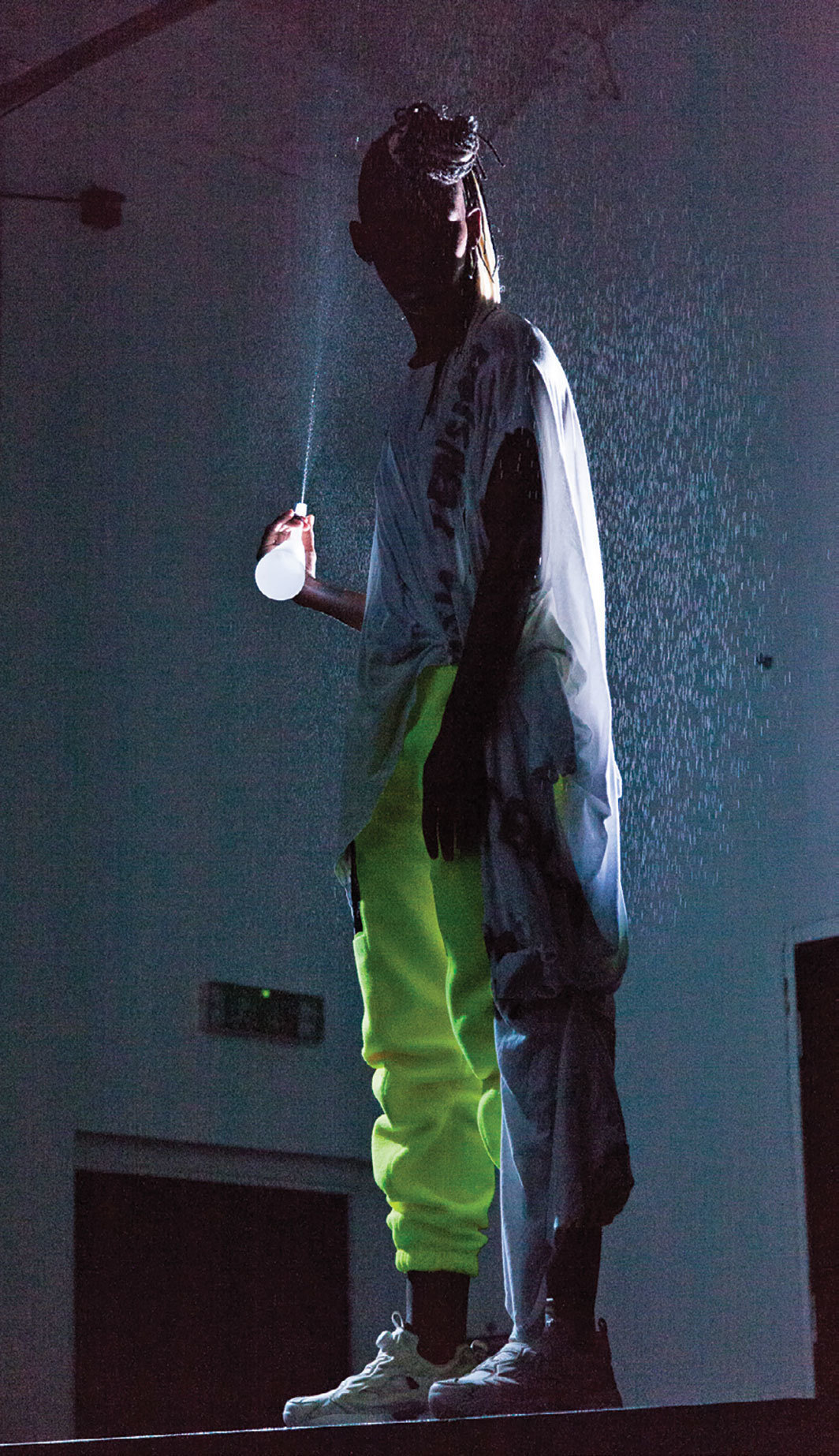 杰米拉·强森-斯莫(Jamila Johnson-Small)以“Last Yearz Interesting Negro”的称号表演,她是伦敦年轻一代中愿意并有能力挑战学科和身份边界的艺术家之一。她与长期合作者亚利山德里娜·汉姆斯利(Alexandrina Hemsley)、费尔南达·穆尼奥兹-纽索姆(Fernanda Muñoz-Newsome)以及保罗·马哈克(Paul Maheke)一同,持续探索形现(appearing)和观看(viewing)之间的权力动态,并且为之赋予不羞耻的愉悦之感。在诸如英国伯明翰Fierce艺术节上的《i ride in colour and soft focus, no longer anywhere》(2016-17)、展于伦敦ICA的《BASICTENSION》(2017-18)以及展于伦敦Block Universe的《FuryZ》(2018)等作品中,强森-斯莫与她的录像化身共舞,或者与伙伴及观众共享舞台,既寄居又瓦解了她在现场的中心地位。