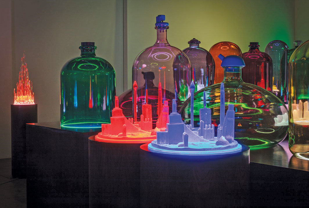 在一个后性别、后类型的宇宙中,超人位于何处?展览邀请我们在艺术家铸造的那壮美的乌托邦城市“坎多”中迷失自我。这次,几乎所有同系列作品都展出了,包括绘图、录像以及无数容纳彩色气体和动人树脂形态的发光瓶子。