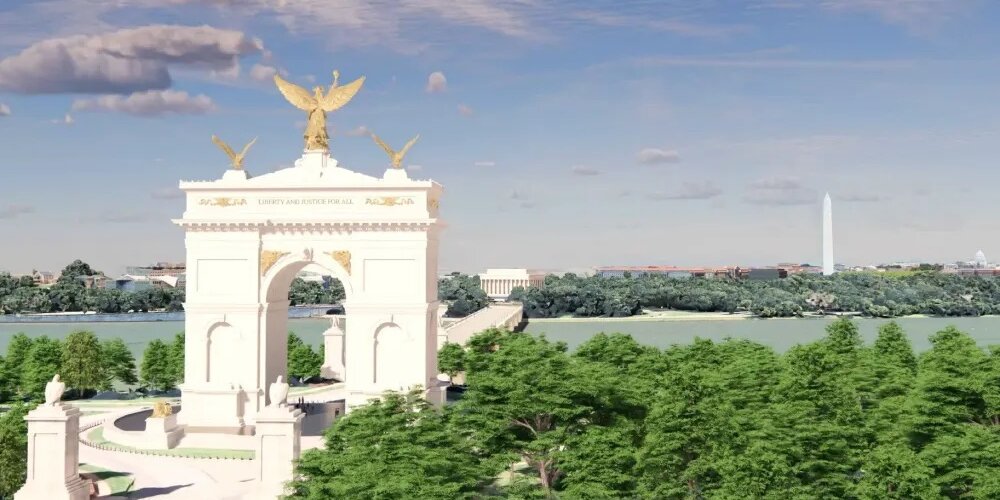 特朗普政府公布了一项计划,拟在阿灵顿国家公墓与林肯纪念堂之间的环形交叉路口建造一座凯旋门,以庆祝美国建国250周年。根据方案,拱门高度将达到250英尺,是99英尺高的林肯纪念堂的两倍多,从波托马克河对岸与之遥相对望。据《纽约时报》报道,效果图显示拱门顶部由两只金鹰托举一尊巨大的金色天使,特朗普称其为“自由女神”。拱门基座四周还设有四只金狮。