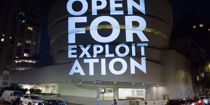艺术家和行动者在古根海姆外墙投影抗议标语