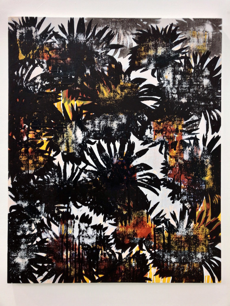 大田秀则画廊展位入口,一个爸爸充满自信地对儿子进行早期艺术教育,“这是我这辈子见过的最丑的南瓜。”他身体一闪,露出背后草间弥生爬满了黑点的大南瓜。儿童节这天,“JINGART艺览北京”的现场到处可以看到拖着孩子的父母或者拖着父母的孩子。几个有点儿年纪的阿姨对一入口佩斯画廊两侧墙上的宋冬的玻璃窗更情有独钟,指指点点久久不散,可能是在其中发现了自己熟悉的视觉元素。也有人更严肃地谈论艺术——一位女士站在豪瑟沃斯画廊的松谷武判的画前面对着一个戴眼镜的男子讲解,“你看这件组品非常优秀,无论从他的哲学还是从技法来说。”