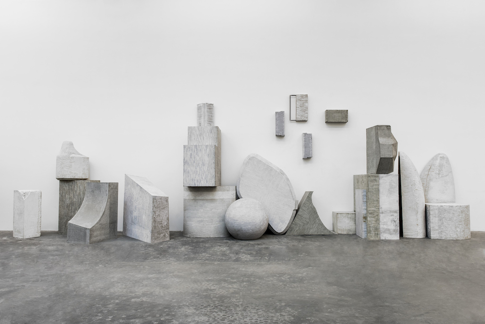 刘韡的作品通过对材料最为精准的使用、在朴素而简洁的形式中投射出他周遭的环境。步入展览现场,观众将穿越一组由军用或船用帆布包裹构建出的高耸几何构型。当人们迷走于这件将人“吞噬”其中的名为《迷中迷》(作品全部于2014年创作)的作品、并最终到达其中心球体结构处时,一面其上颜色波动转变的巨大屏幕——《转变》映入眼帘。与其相呼应的是墙面上一组经由数码设计的城市纵切和水平风貌油画。