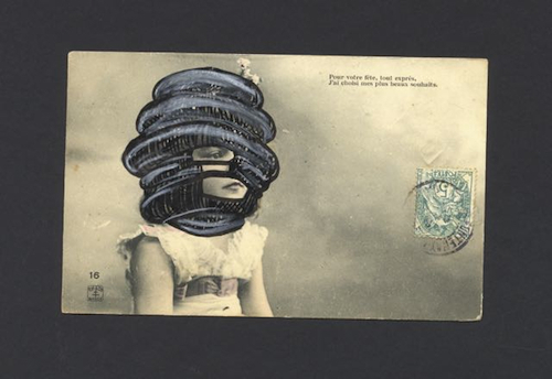 当美国肯特大学1970年因枪击事件而停课时,学艺术的学生马克•马瑟斯鲍(Mark Mothersbaugh )和杰拉德•卡塞尔(Gerald Casale)的工作室也随之关门,他们只好回家做音乐。后来乐队取名为DEVO,是de-evolution(退化)这个词的缩写,意指世界正在分崩离析。本次展出的一些七十年代的拼贴画,就像马瑟斯鲍的书《我的挣扎,动感男孩》(My