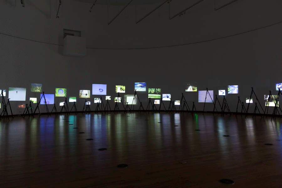 假如有一只木球下落,当它由落地的一刻直至粉身碎骨,这其中需要多长时间?一秒?两秒?也许至多不过三秒。在罗曼·西格纳(Roman Signer)的近期个展所展出的作品中,西格纳试图扩展与延伸我们在这特定时刻里对运动和时间的感知。在一分多钟的过程里,一只内部充满蓝色颜料的木球坠落地面摔得粉碎,四溅的颜料如纷繁的咒语般催眠着观者。这蔓延的片刻并不旨在唤起任何政治表态或理论性的概念,而是在一种神秘的美感中勾起了我们对这第四纬空间的好奇与迷恋。