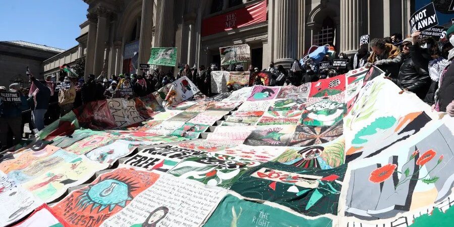 巴勒斯坦支持者以巨型拼布占领大都会博物馆台阶