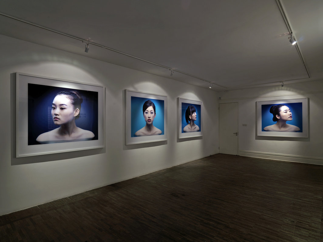如果其上世纪90年代的作品《洛杉机肖像系列》被人戏称是“打盹”之作,那么Roland Fischer这次的确是为新作《中国游泳池肖像系列》找对了人种。亚洲人的黑发黑瞳似乎更适合静谧莫测的水。镜头下的人物,与世隔绝但又异常友好;嘴角稍扬,神情笃定。而湛蓝的泓澄的水则深化了画面的简洁平缓,使之神秘而柔和。比起《洛杉机肖像系列》中人物直面观者的强迫姿势,这些亚洲女性或回眸或侧身凝望远方的体态为直白突兀的构图添了几分跌宕与连绵。艺术家在精确把握光线焦距的同时,也干脆利落地表现了人物的性格。