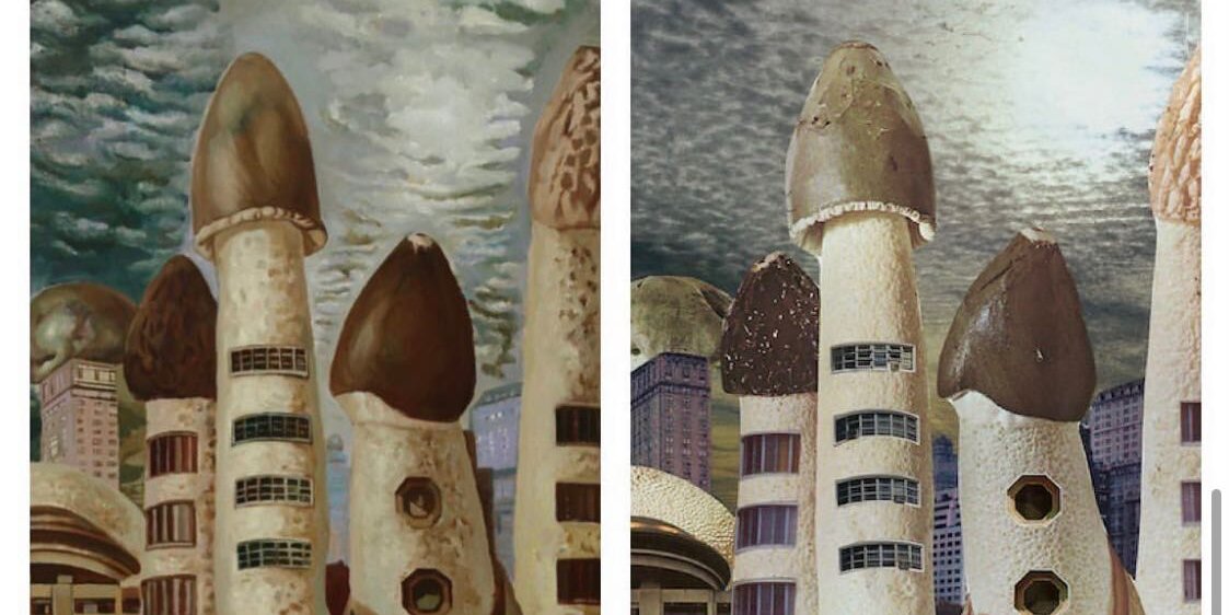 根据“脏艺术DirtyArt”,徐跋骋的绘画作品主要涉嫌抄袭美国艺术家吉姆·卡赞吉安(Jim Kazanjian)的黑白摄影拼贴作品和英国艺术家西纳·盖文(Seana