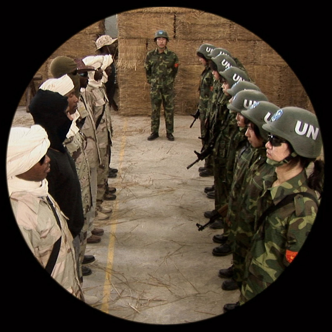 2008年10月,苏丹武装分子在苏丹南部绑架了九名中石油工人。十天后,根据最新报道,四名工人试图逃脱未果,被杀害;另外三名被解救,一名逃脱成功。一年后,中华人民共和国迎来六十年大庆,国庆大阅兵成功举行,此时,上次事件中最后一名被绑架的工人,依然下落不明。对于媒体夸大的民族主义,中国在国际外交事务中的斡旋,人们对网上游戏的痴迷,艺术家在最近的装置作品《军演营—10.18营救》中,对这些问题进行了深入思索,为苏丹事件进行了续写。