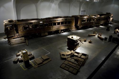 张洹的作品往往给人留下一个落空的期待:它们是不是应该更加完美一些?确实,这些作品留下的直观印象过于粗野、生猛、狂放,似乎总有那么一两笔、一两个过程有待加工完成。就拿“希望隧道”来说,昏暗的展厅内横置着几节报废的机车残骸,尸骨般的零件无序地散落四周。较之一些艺术家精心营造某种残破的末世氛围,“希望隧道”呈现出来的凌乱更多是出于艺术家的不拘小节或者展厅单一空间的局限。