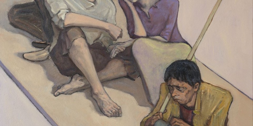 李然在伦敦里森画廊的首次个展"等待降临"呈现了2件影像和2022年至2023年期间创作的12件绘画作品,除此之外,还有一本文册,里面包括了绘画手稿、影像剧本和短篇小说《敬虔的忧愁》节选内容。展览如同一出群像剧,里面的人物共享着某种相似的时代情境和作为“小知识分子”的身份困境:他们有着复杂的内心,渴望逃出牢笼,又尝试建立自身的主体性。而不同的个体遭遇,不仅如切片般勾连起展览的空间叙事,也将画中的人物“显形”,带给人一种“朦胧”的切身感。下文聚焦李然作为创作者的个体经验,以及与之关联的时代遭遇、艺术现场和背后的实践转向。展览持续到10月28日。