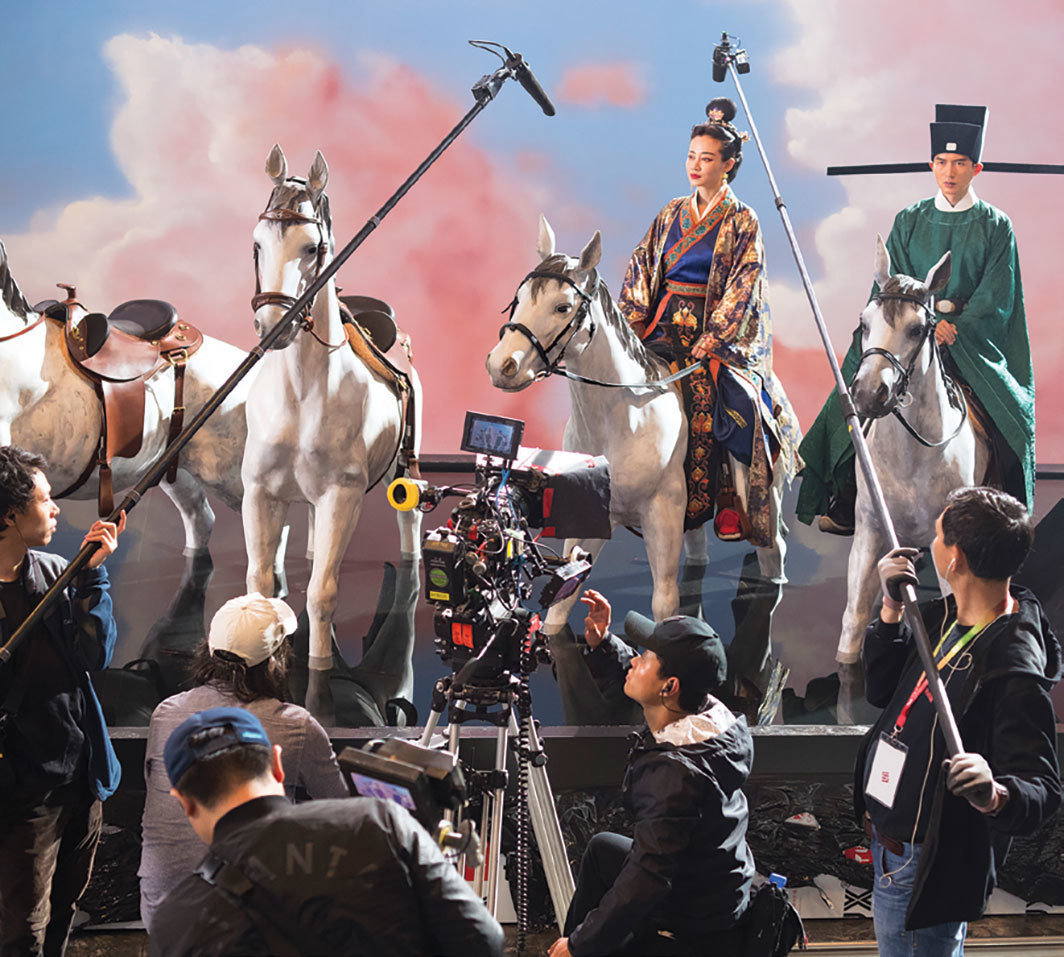 2018年5月初,杨福东“美术馆电影”项目《明日早朝》在龙美术馆开幕。如果说《竹林七贤》是一首挽歌的话,《明日早朝》则更像是一部史诗。和他此前的诸多作品一样,《明日早朝》也没有一个完整的剧情和叙事。根据美术馆的空间结构,杨福东搭设了一个宋室早朝的开放场景,在为时一个月的展期内,每天演绎一则“早朝日记”。这些“日记”混合着作为台词的尼采语
