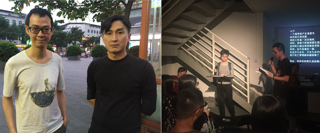 如果说创作是一种特殊的劳作,如诗人在开场白中的希冀,“在生活方式,也在美学思想上与文学的社会上升路径拉远距离的活动”,那么很难说这次现场的朗读不是另一次艰苦而且更加直白的身体劳作:两个多小时的朗读后,诗人的衣服已经湿透。这些长诗的朗读见证着诗人的体力,也见证了观众的耐力:这样的朗读活动永远是作者与听众合作完成的壮举。我想,观众里的许多人一定像我一样屏住呼吸,让诗句接连敲击耳鼓。这些致密的句子迸发得太快,以至于它们往往越过了思想,直接震动着在场每一个人的身体与神经。