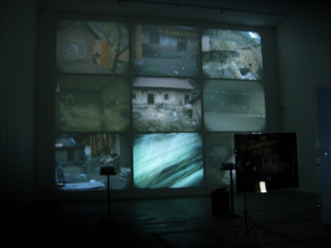 此次在香格纳画廊北京空间展出的章清作品延续了他拿手的影像装置与摄影。展厅中布置着一组摄影作品,映衬着背景墙上的九频摄像头录像。在对面的墙上则放映着在乡村拍摄的纪录片。章清试图在作品中呈现出一种悖论。衣着光鲜的白领,置身于偏远山村常见的土坯房,仍旧保持着平日的节奏,步履轻快,面容焦躁,无视身边的环境而专注于永远忙碌的电话。