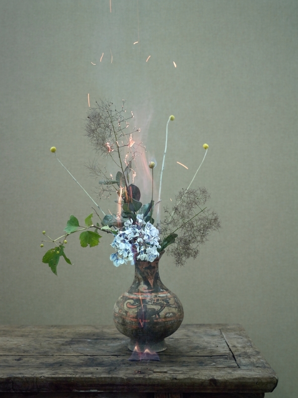 大概是我们目睹了过多远方和附近的具体生活,以至于初看“生活”作为展览标题是如此乏味甚至让人感到厌恶——生活,几乎沦为艺术的反义词。而蒋志像是带着欲言又止的口吻“遗憾”地写下生活两个字,他用火焰“燃烧”花朵(《情书》,
