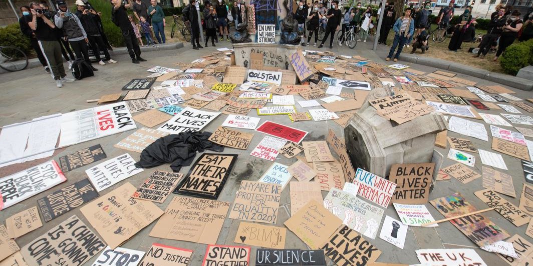 在英国布里斯托,一座已矗立125年、高18英尺的十七世纪奴隶贩运者爱德华·科尔斯顿(Edward Colston)的雕像于本周日被一群抗议种族不公的示威者推倒,并扔进布里斯托港。受全美各地移除邦联时期纪念碑行动的鼓舞,英国等地的示威者也开始推倒有争议的历史人物雕像。