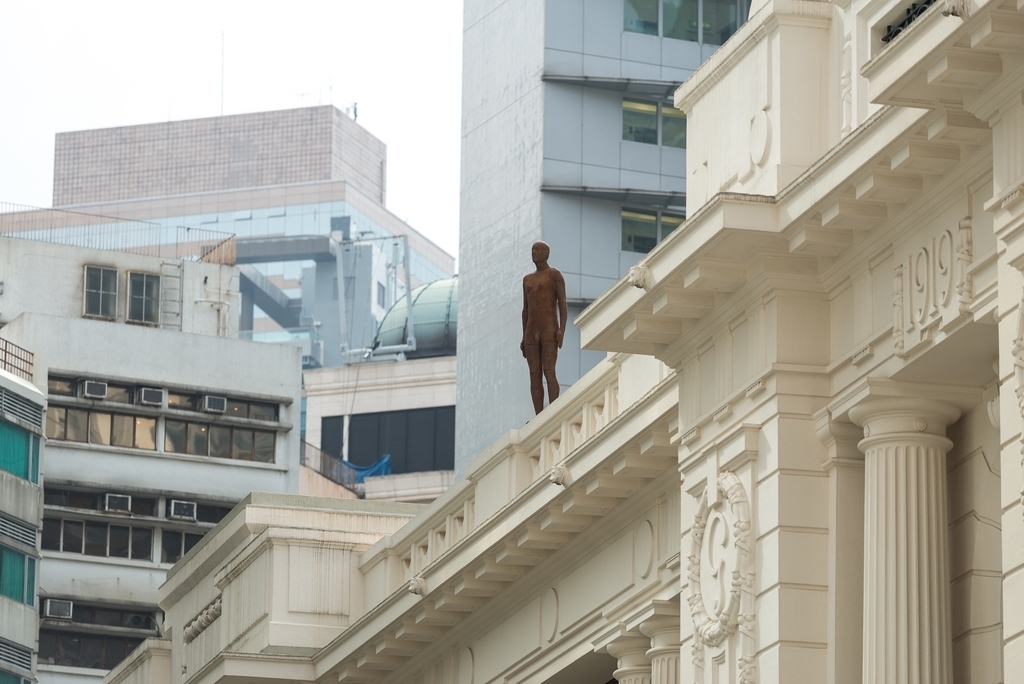 香港近期展出的公共艺术项目普遍呈现出欢快愉悦的姿态——从2013年在香港维多利亚港亮相的弗洛伦泰因·霍夫曼(Florentijn Hofman)的巨型充气装置“大黄鸭”,到2014年保罗·格兰金(Paulo Grangeon)的1600只纸制熊猫在城市中上演的“快闪”。而此次展出的安东尼·葛姆雷(Antony Gormley)的“视界
