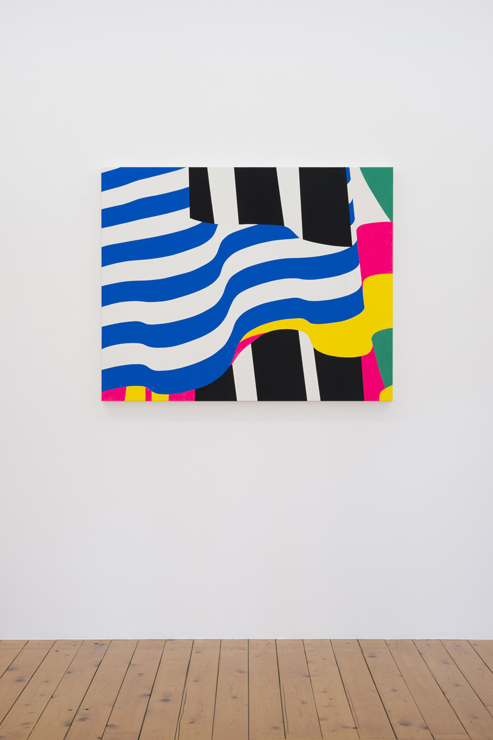 这次在HAGIWARA PROJECTS的个展也基本以由原色、荧光色或金属色的条纹和原点反复重叠组合而成的绘画为主。正如展览题目“surface /