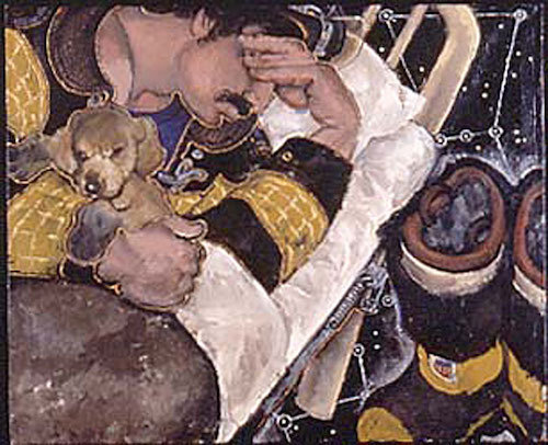 出现在黄马鼎(Martin Wong)绘画中的八、九十年代的纽约下东区,就像他画面里的砖墙和星星一样,粗粝而辉煌。群星镶嵌的夜空构成背景,衬托着布片拼接式的住宅楼,沉浸在红褐色、棕色、灰色、金色和黑色之中。如同神话中有大力神和九头蛇,在这个城市的街头也时刻出没着现实生活中的英雄和怪兽:情侣,瘾君子,囚犯,诗人,斗殴者和消防员。用丙烯颜料毫不克制的层层涂抹的每一块砖,犹如肉体的斑驳表面,构成了黄马鼎画面里无法无天的绝望世界。这些紧张的肉感肌理和精神层面间的强烈对比,暗示出贯穿于艺术家毕生创作的二元论:身体与灵魂,现实与幻觉,卑劣与神圣。