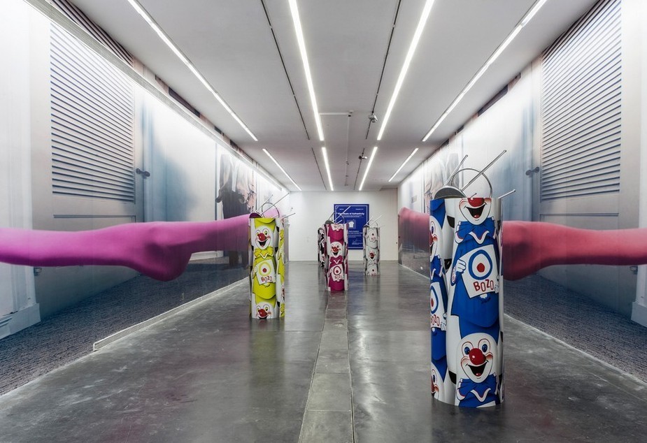 尤伦斯的中央甬道仿佛直接通向好莱坞:Alex Israel在甬道墙壁上铺设了巨大的壁画装置,其中的道具以荒诞的逻辑拼凑出好莱坞式街景。在全球化经验当中,好莱坞也许不再仅仅是一个地方,而是一种渗透了日常生活的存在,在此种意义上,艺术家将好莱坞视为自己的缪斯。在“洛杉矶计划”的开幕当天,Alex