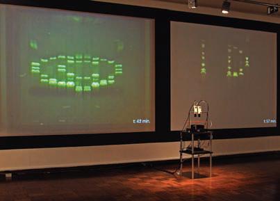 “沉默攻击”以其规模和音响显示它的存在。这个有建筑般规模的嘈杂的柱形机器人列阵,不仅仅是对在一个远程培养皿中的神经活动的放大。“沉默攻击”是在探讨思维、自由意识和神经功能障碍的本质。这件作品旨在研究神经组织的爆发性失控活动——癫痫病和培植的神经细胞的典型特征。“沉默攻击”利用观众在建筑空间(放大了的神经活动)的动作和反应来反馈给培养皿中的神经细胞,以试图平缓电脉的冲击。科学家希望这能够帮助它们了解如何镇定培养皿中的活动,以便会有助于癫痫的治疗。