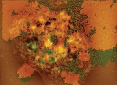 “点石成金”项目是一个视觉和听觉的装置,它将某种纳米层面的体验放大。该项目比喻迈达斯的诅咒,弗里吉亚的国王迈达斯被狄俄尼索斯赐予魔力,可以将他触碰的所有东西变成金子。这个魔力很快就变成了一个诅咒,因为他的食物和饮品也纷纷被转化成金子。“迈达斯”项目利用了一个皮肤细胞作为探索纳米生物体触觉的视觉喻体。一架原子动力显微镜(AFM)被用来显示一个培养的皮肤细胞,AFM在立体观测模式下记录皮肤碰触金子时的原子级振动。装置由一个镀金的三维模型和一个皮肤细胞的数字投影组成。观众接触镀金模型来与原子振动互动,同时启动半自动纳米机器人来消耗投射的细胞图象。