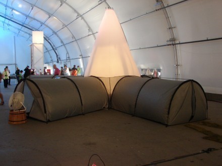 《天气隧道》(Weather Tunnel)呈现了全球环境的实时数据。这一组由众多年轻艺术家创作的作品摈弃了说教和劝诫的再现手法,将不易理解的复杂的科学数据以一种即刻并直觉的方式呈现出来,提供了一个人类生存环境的缩影,把对我们赖以生存的地球的关注纳入到展览中一个突出的位置。